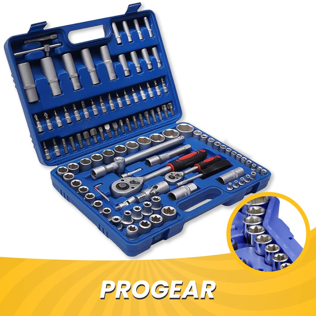No se pudo cargar la disponibilidad de retiro Materiales de alta calidad El juego de herramientas mecánicas, está hecho de acero al carbono de alta calidad, garantizando una excelente resistencia al desgaste y un rendimiento perfecto. Además, es muy fácil de transportar a cualquier lugar. ¡El regalo que todo hombre quiere! Nuestra caja de herramientas mecánicas, es ideal para amigos y familiares. Será el mejor asistente para reparaciones de viviendas, de automóviles, construcción y fabricación. Ya puedes deshacerte de todas esas herramientas que andan regadas por todo lado y que a veces no encuentras. ¡ProGear es la solución! Múltiples funciones ProGear ofrece una combinación completa de llaves, conectores, trinquetes, juntas universales, adaptadores y más, estarás preparado para cualquier desafío. No solo compras herramientas, adquieres un conjunto completo de posibilidades. Especificaciones y contenido: Material: acero al carbono Color: Plata Color de la caja: azul Tamaño del paquete: 38.5* 28* 8cm La caja incluye: